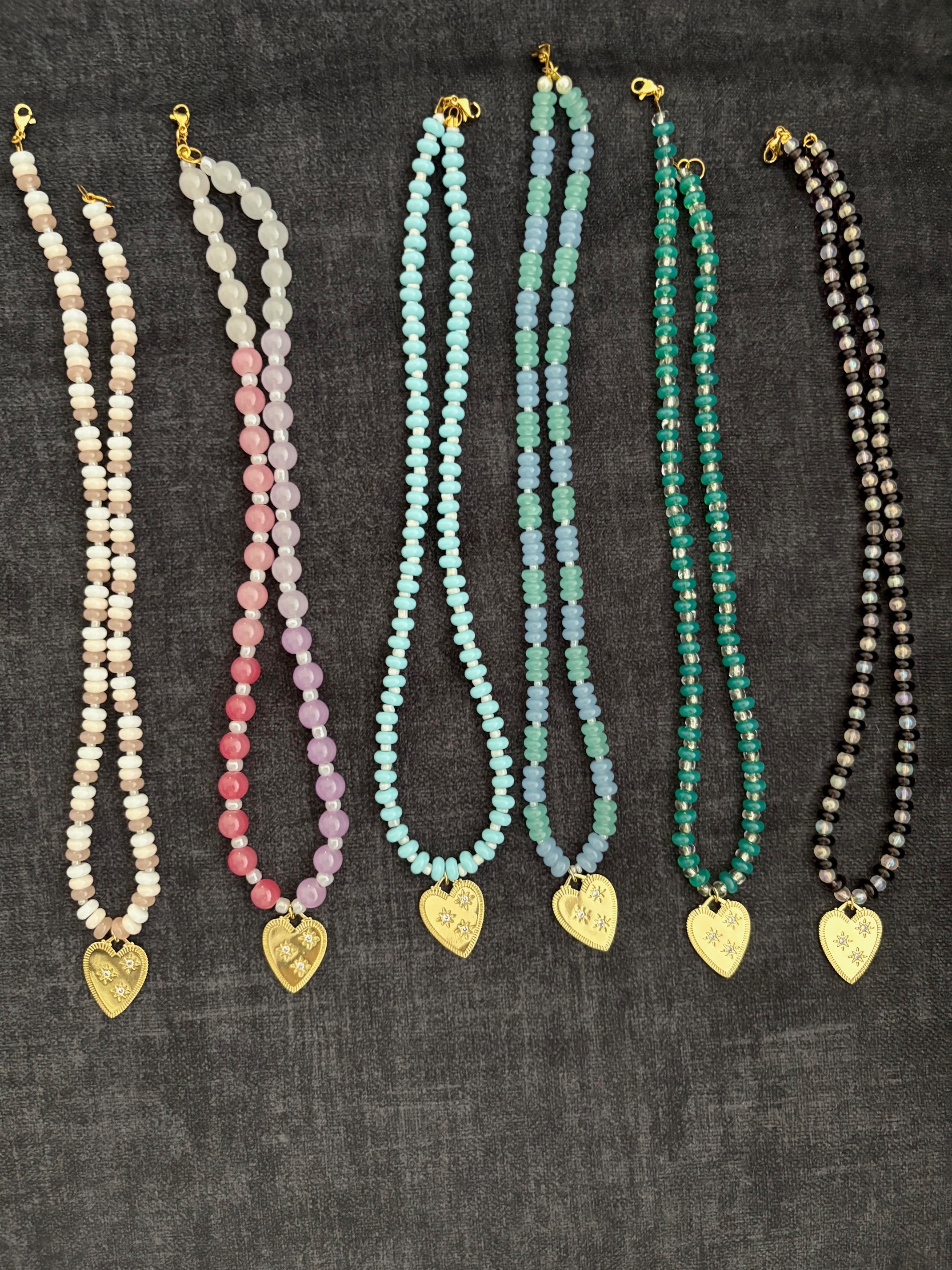 vintage blue sapphire, pearl, crystal and silver necklace -